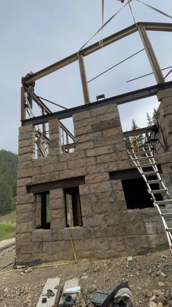Welding of structure for house and roofing underlayment installation on top of steel frame. Welding using Stick-welding technology.